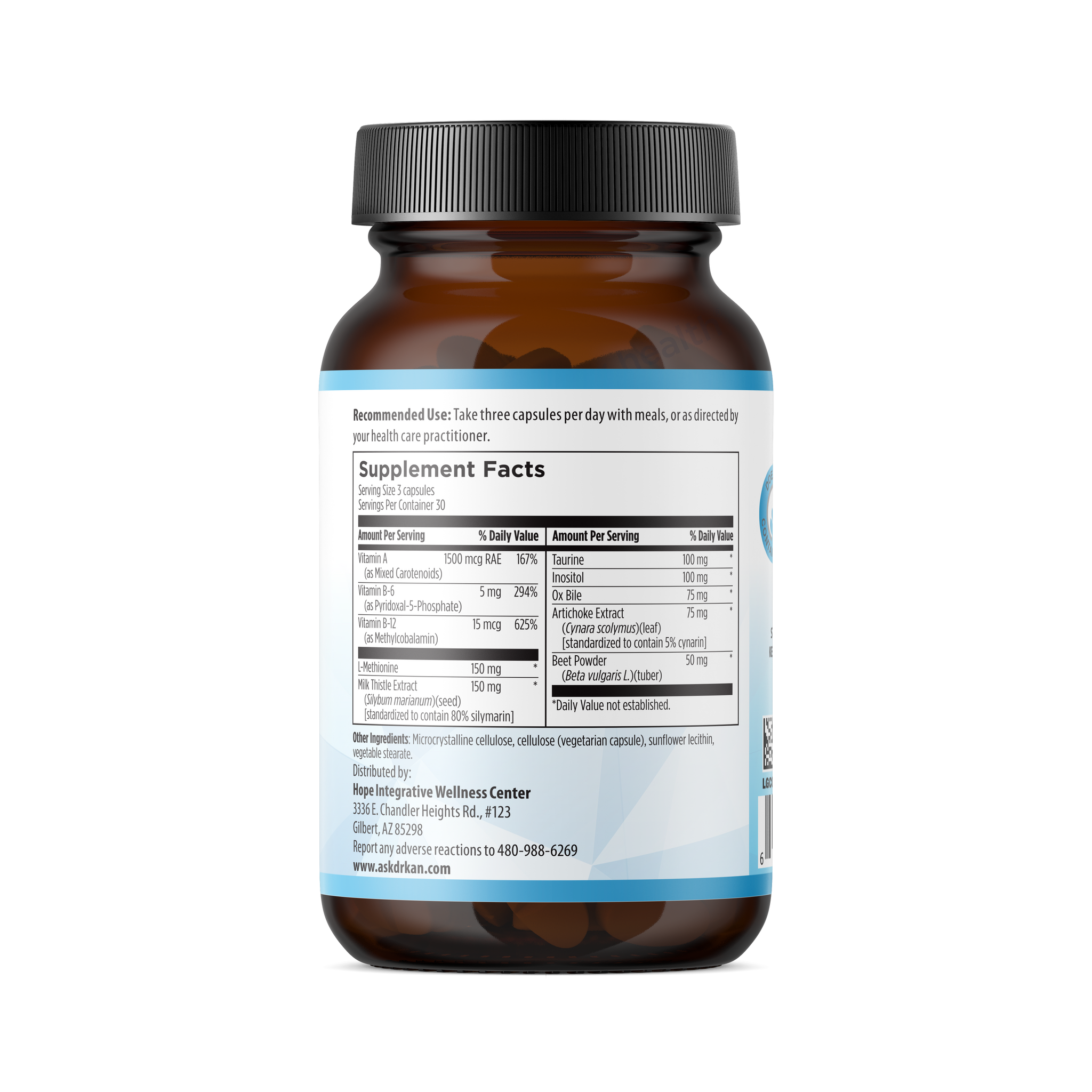 Cholecys Pro provides incomparable support for healthy liver and gallbladder support. This product provides lipotropic substances and liver detoxification enzymes to help the elimination of fatty substances from the liver, as well as promoting proper bile flow (L-methionine, taurine, betacarotene, ox bile and inositol). Detoxification enzymes (vitamin B12 and the pyridoxal-5-phosphate form of vitamin B6) are mixed with a combination of hepatic (meaning: aid the liver) and cholagogue (meaning: aid bile flow) herbs such as milk thistle, artichoke, and beetroot to ensure the most effective processing and elimination of toxins.
